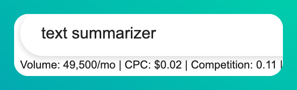 “Text Summarizer” is searched almost 50,000 times per month. I don’t like doing ideas that aren’t validated. This is validation - if people are literally looking for a solution to a problem, it means there is a market for the solution.